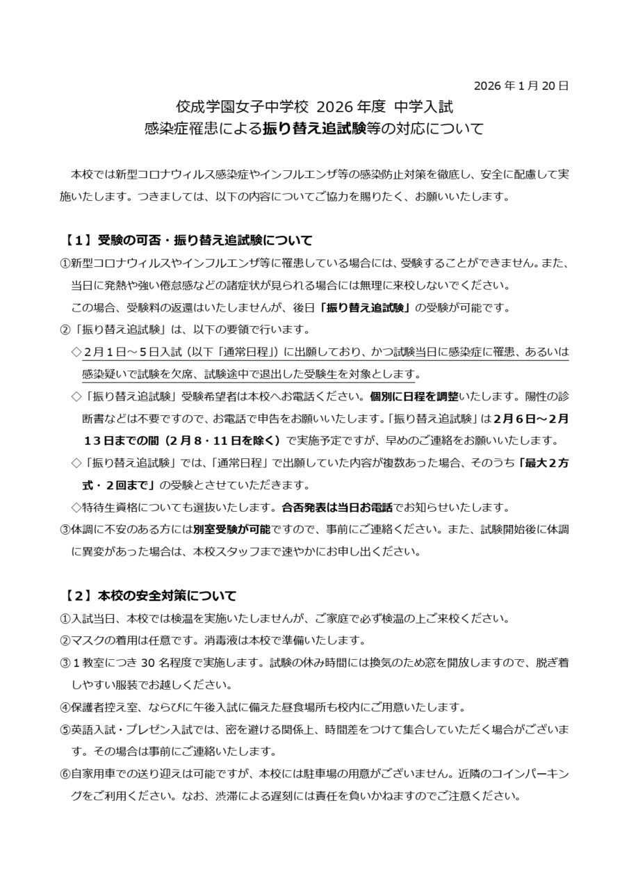 感染症罹患に伴う振り替え追試験のお知らせ