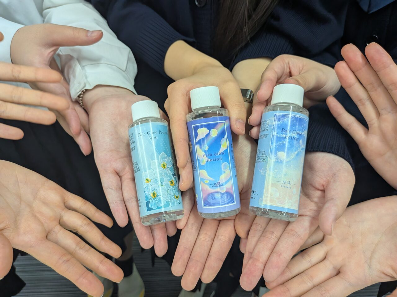 探究学習の一貫として生徒が作った本校オリジナルの「化粧水」がついに完成しました!