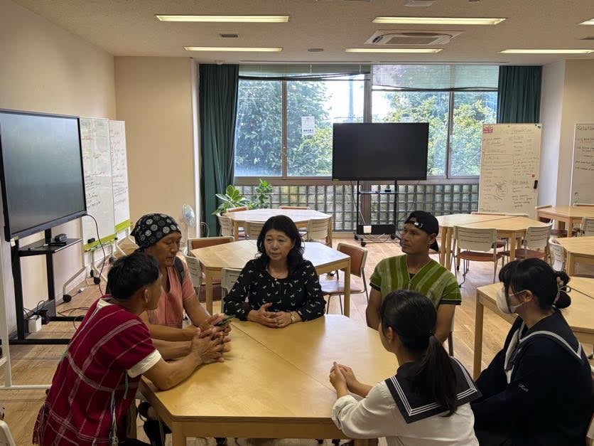 交流授業は、前後半に分けて行いました。前半は、タイ研究を進めているSG生たちが、帰国後の研究で浮上した問いを皆さんに次々と質問しました。カレンの皆さんは、全ての質問に丁寧かつ熱心に、時にユーモアを交えて答えてくださいました。後半は、「だるまさんが転んだ」で一緒に遊び、ソーラン節や盆踊りを一緒に踊りました。高1SGコース11期生の有志も参加し、カレンの皆さんとSGの先輩たちが交流する様子を見て、今年12月のタイ研修がますます楽しみになったようです。