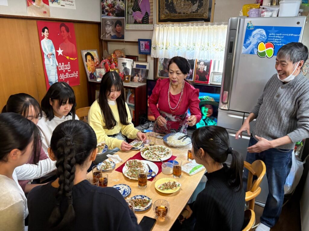 今年3月、高3SGコース9期生の有志はご夫妻のお宅にお邪魔し、手作りのビルマ料理をご馳走になりながらお二人からお話を聞き、さらには現地の若者たちとビデオ通話で交流しました。