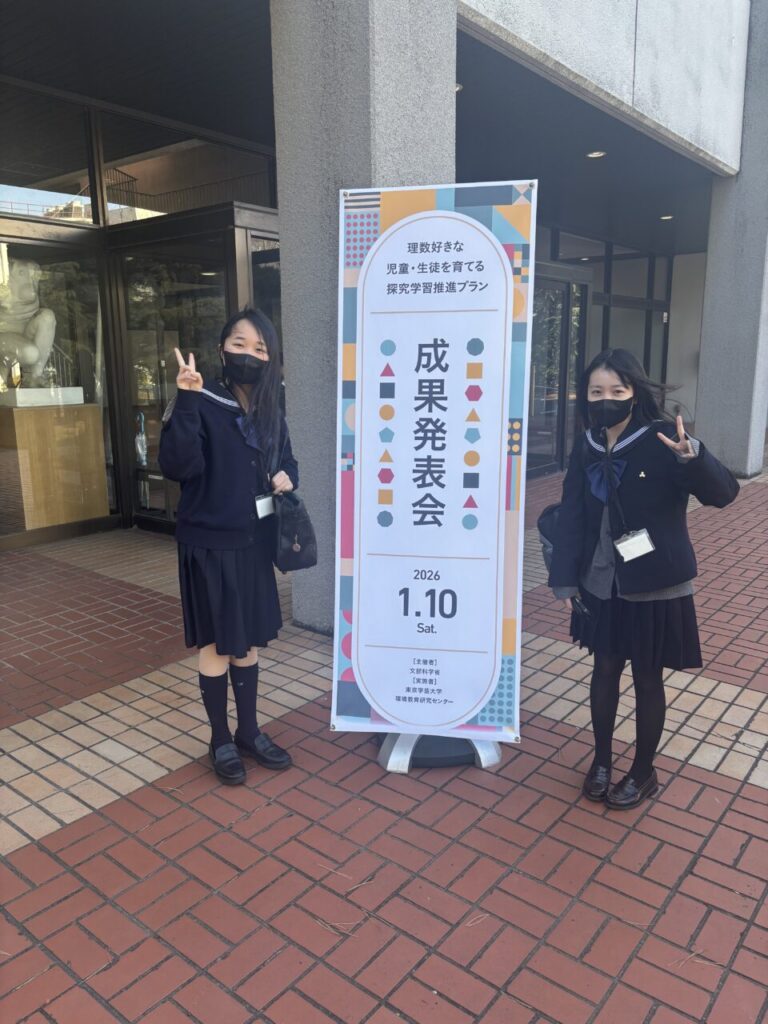 1月10日土曜日、科学同好会の2名が『「理数好きな児童・生徒をそだてる探求学習推進プラン」2025年度成果発表会』に参加しました。