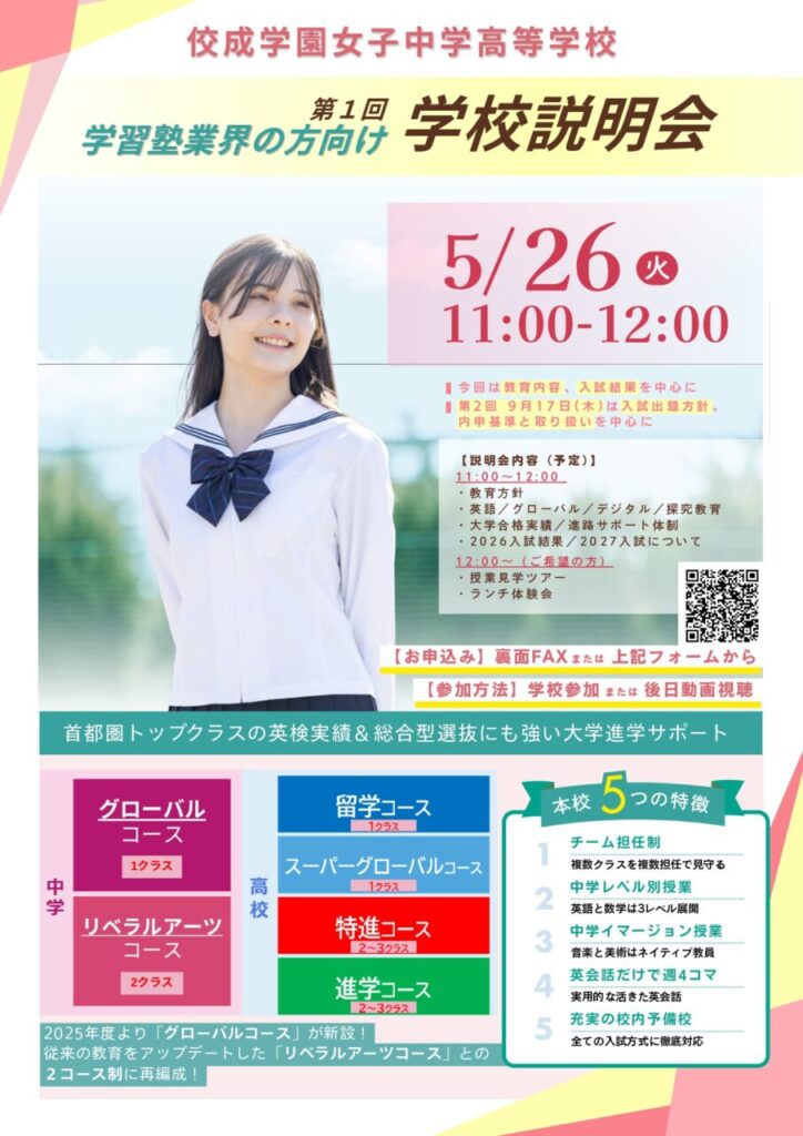 本校では下記の通り、塾の先生方、教育関係の皆様方を対象とした学校説明会を対面形式にて開催させていただきます。